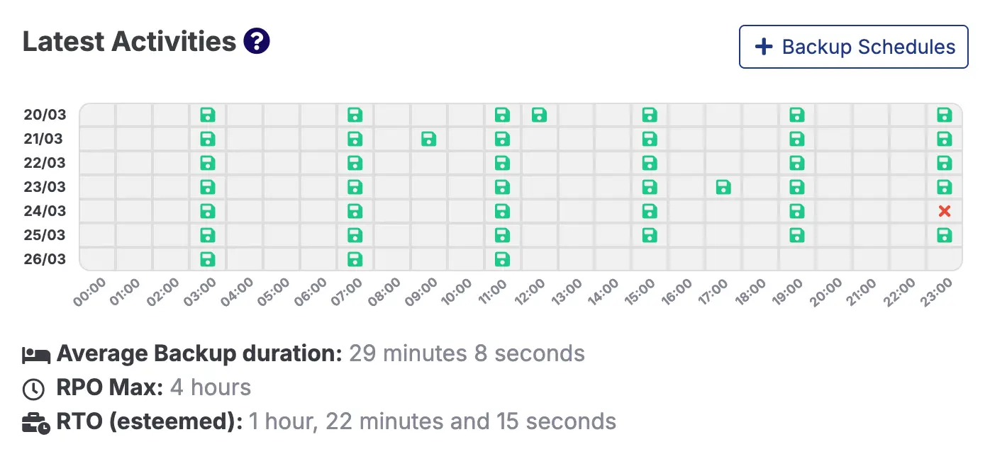 Utilizza il backup incrementale per velocizzare il backup del tuo server e decidi quando eseguirli, per un RPO ottimizzato.